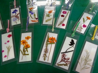ゲストティーチャーを招き、毎年恒例の押し花しおり作りです。職員も集中して作業にのめり込みました。
