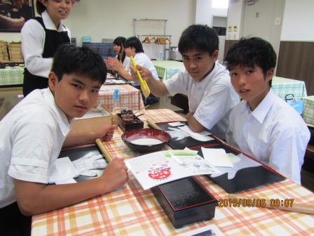 毎年恒例となっている、講師をお招きしての道徳です。絵手紙を通して、お世話になっている方々への感謝の気持ちを表します。 |