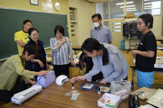 村教委等が授業を参観する機会がありました。音楽と理科の授業を、1人で頑張っている様子を参観されました。ただし音楽については一緒に参加していただきました。
